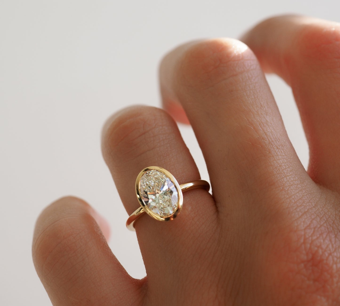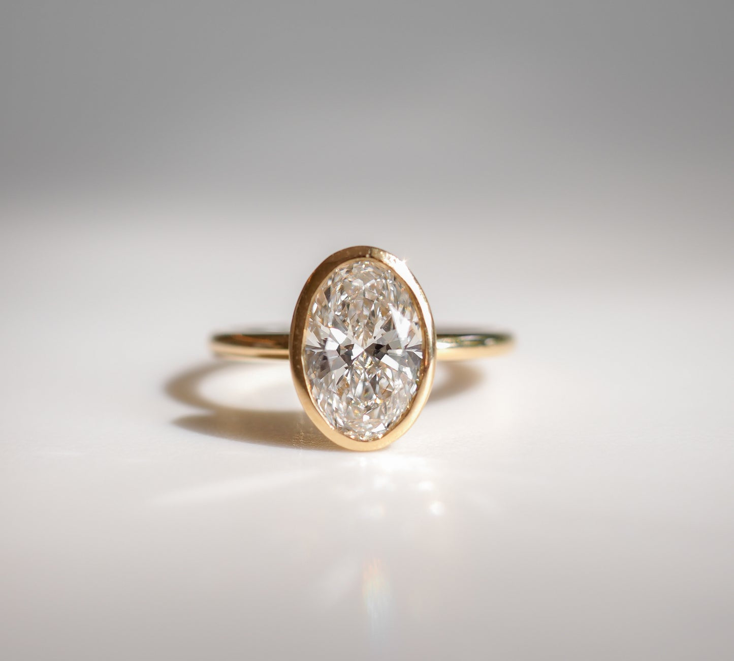 1 CT Oval Shaped Bezel Lab Grown Diamond Engagement Ring