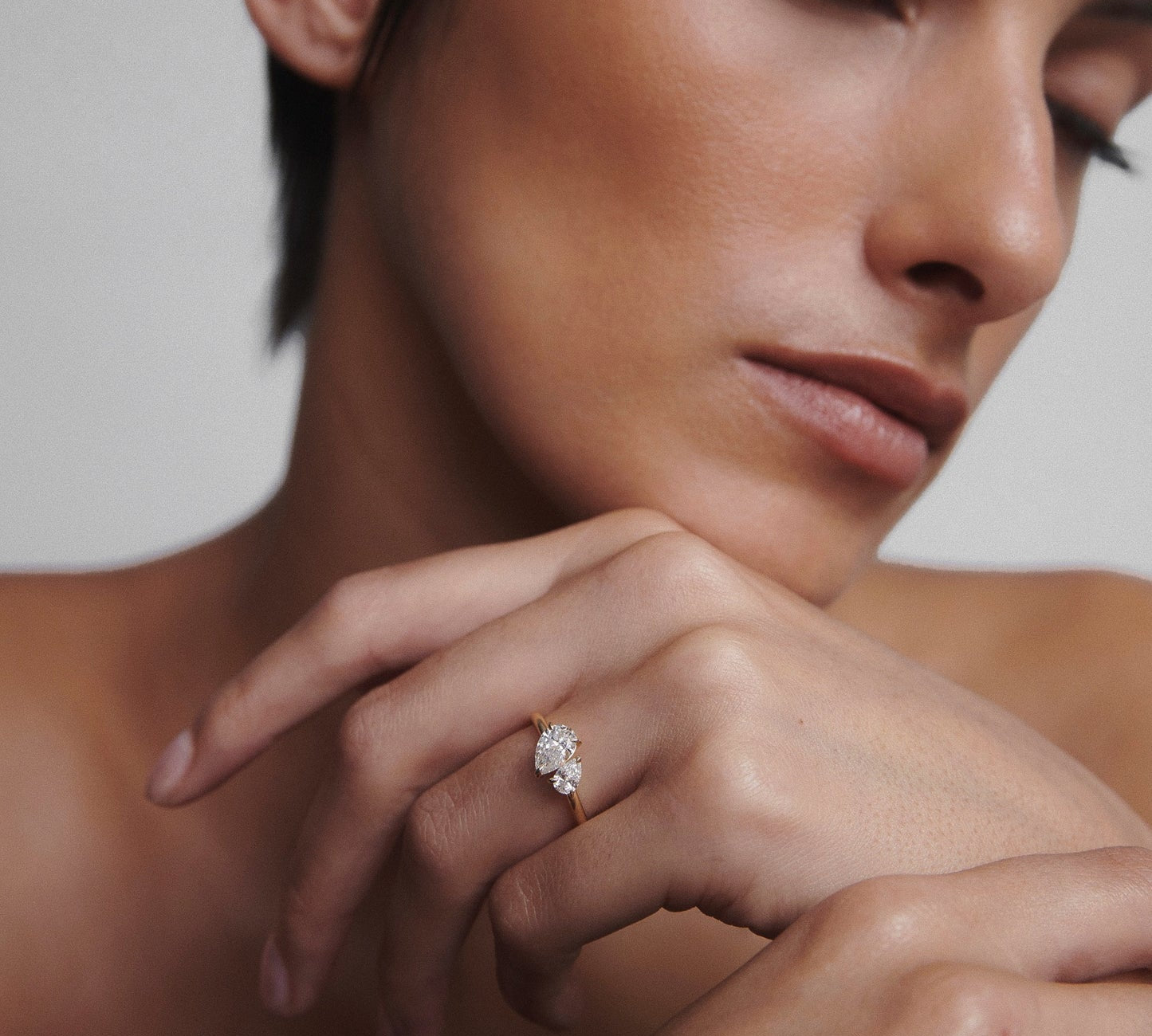 1.27 CT Pear Pave Lab Grown Diamond Engagement Ring