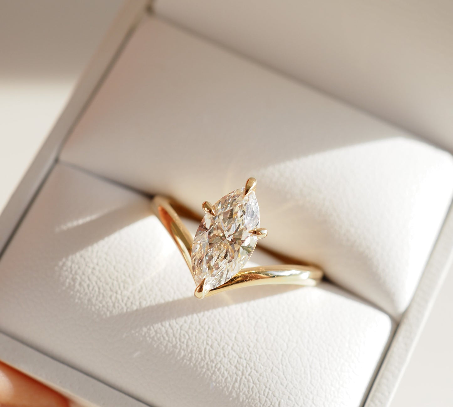 1.32 CT Marquise Shaped Solitaire Lab Grown Diamond Engagement Ring