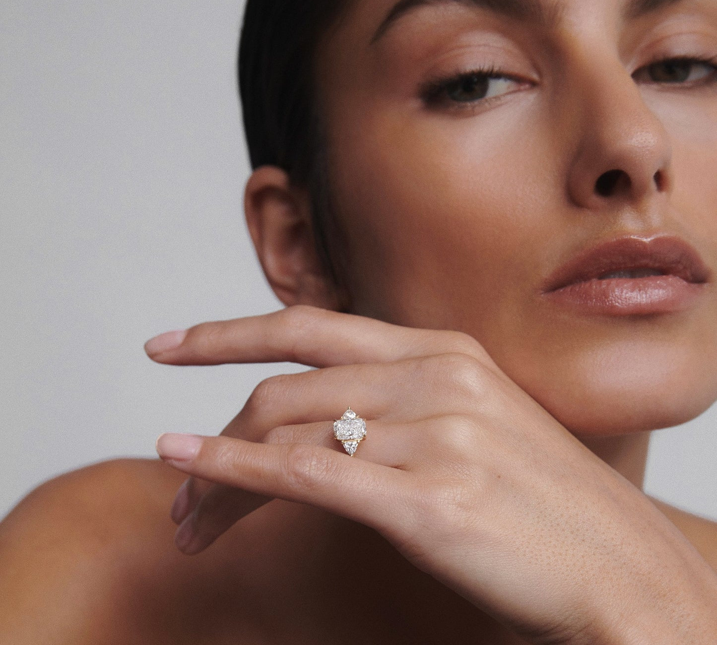 2.01 CT Enlongated Cushion Shaped Three Stone Lab Grown Diamond Engagement Ring