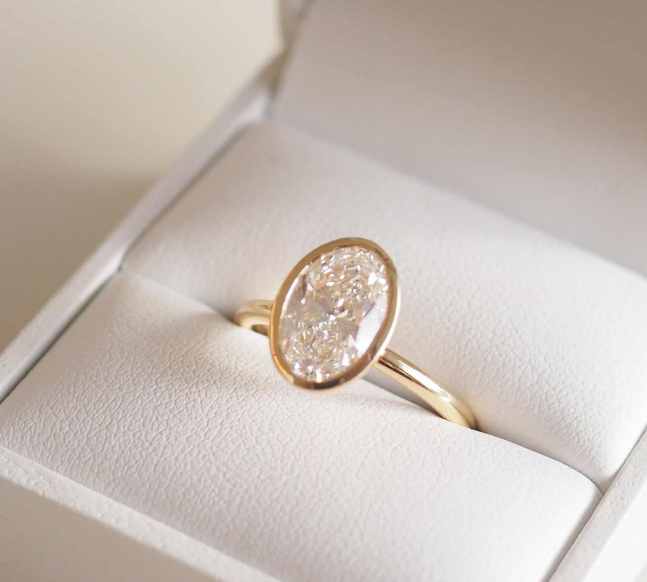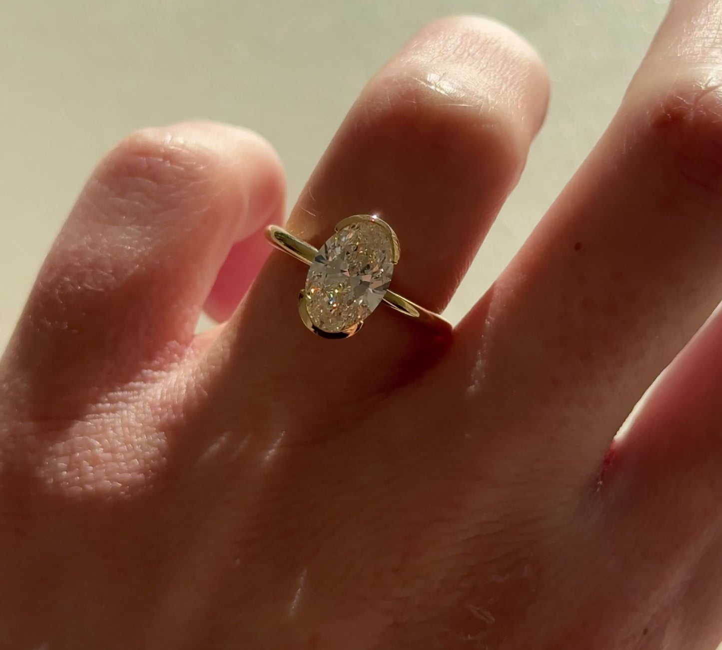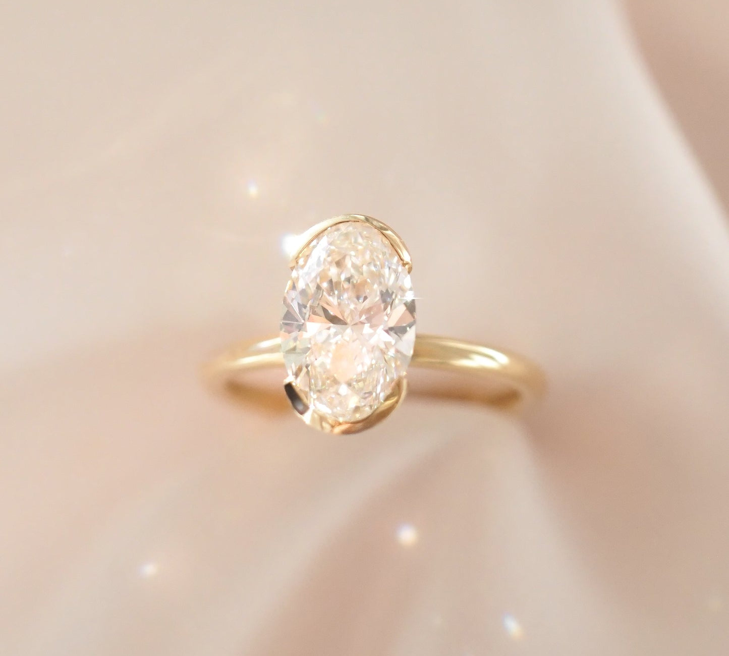 2.02 CT Oval Shaped Half Bezel Lab Grown Diamond Engagement Ring