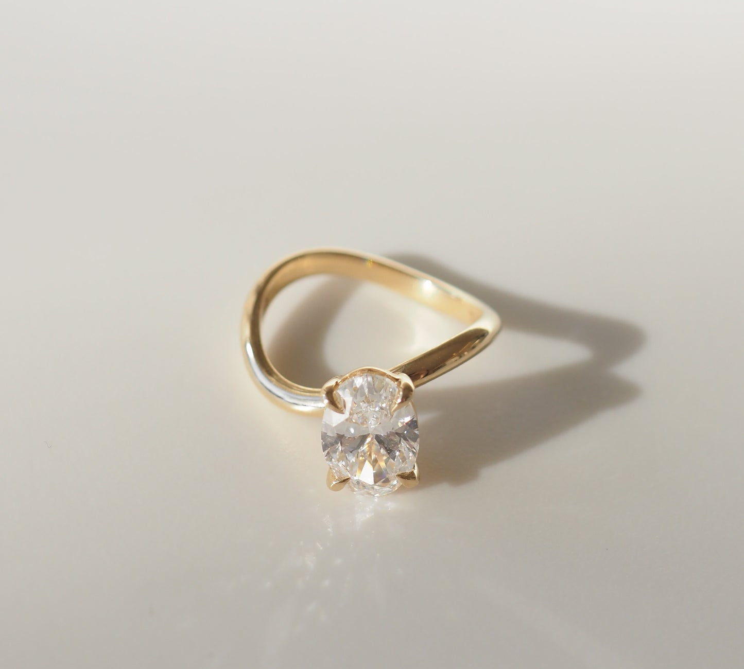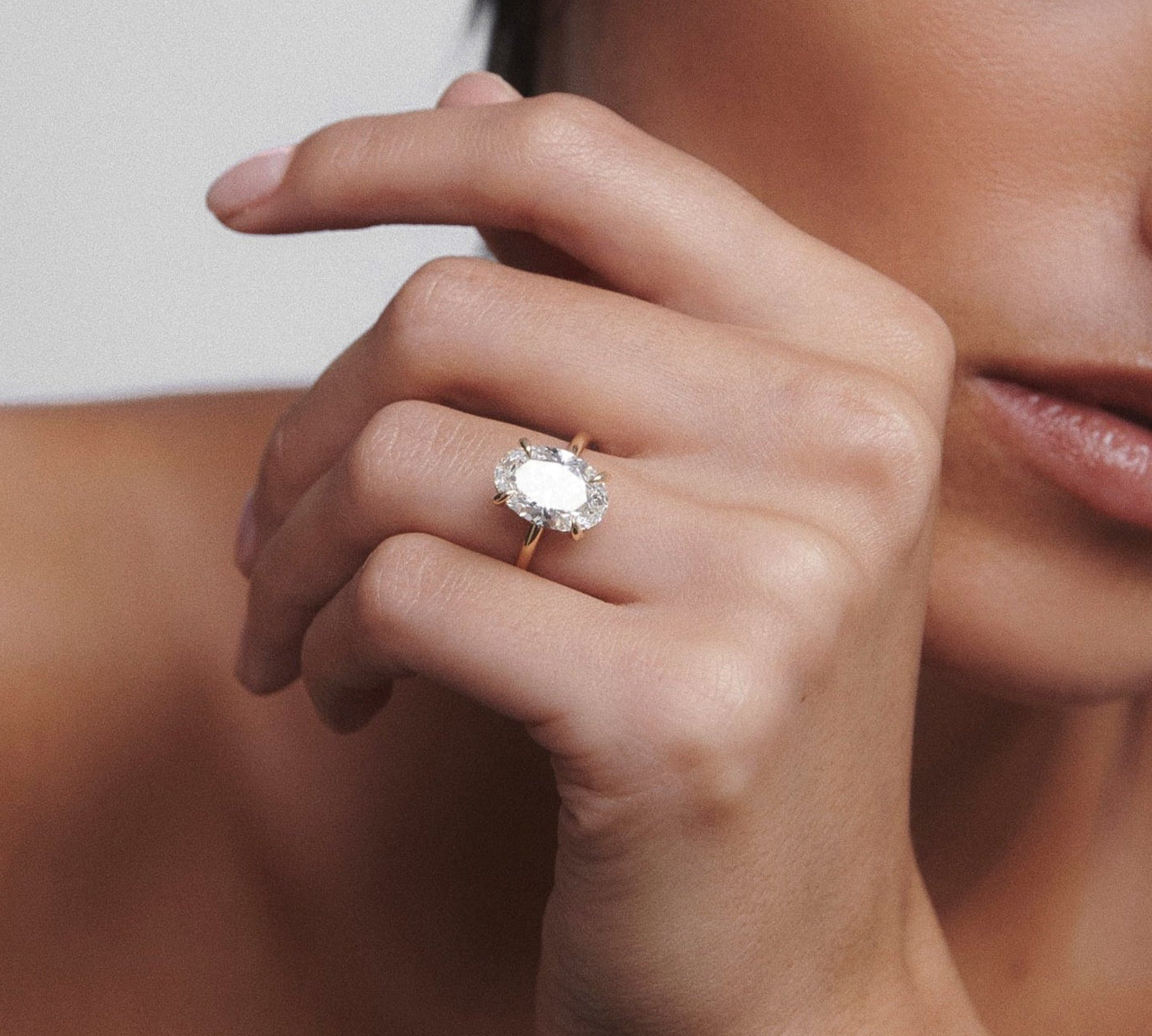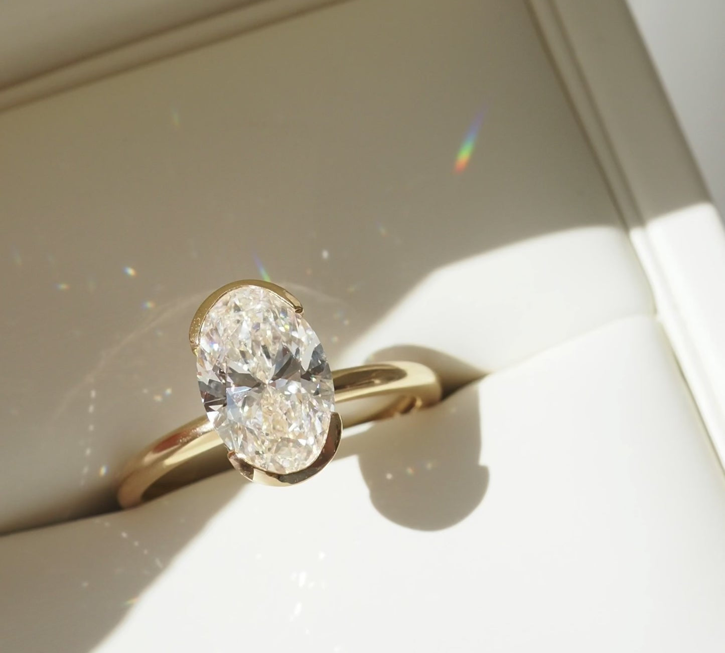 2.02 CT Oval Shaped Half Bezel Lab Grown Diamond Engagement Ring