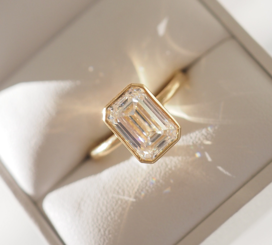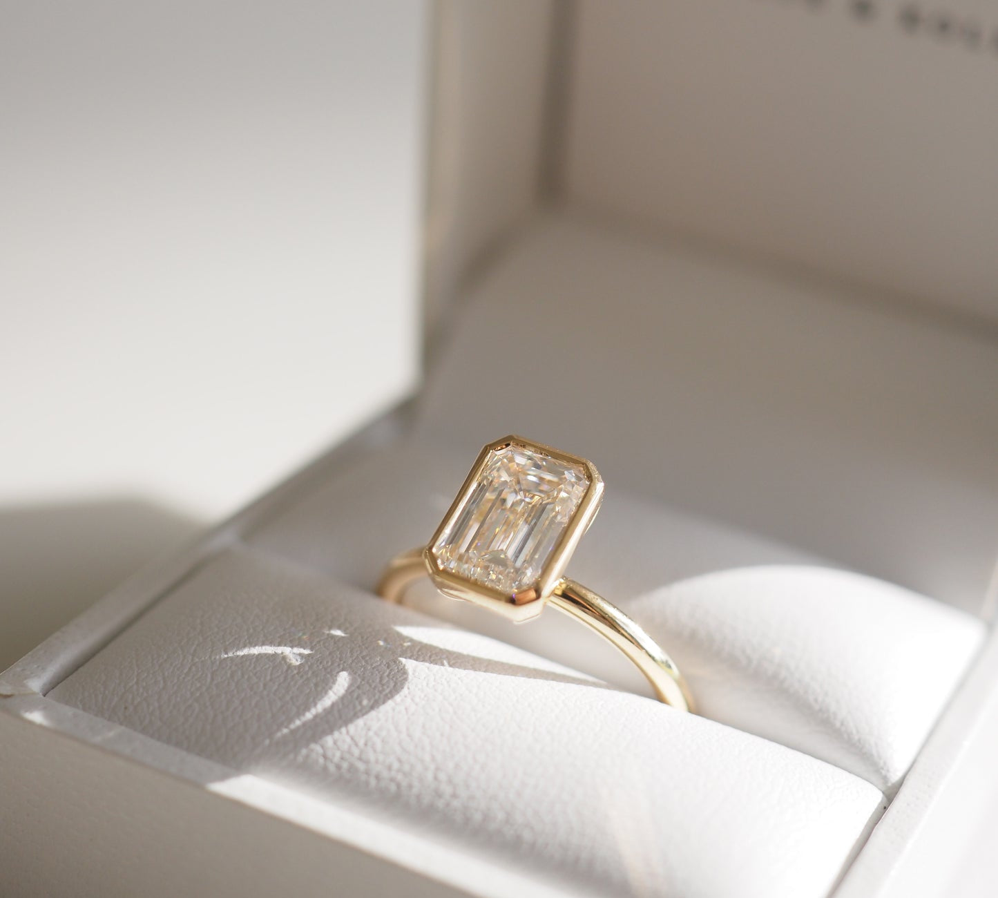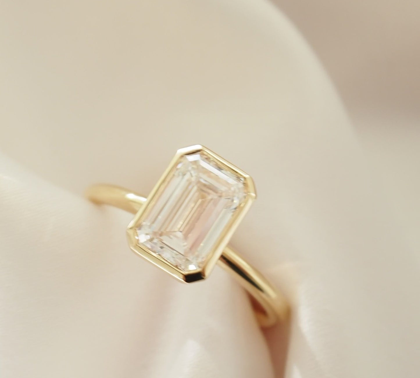 2.02 CT Emerald Shaped Bezel Lab Grown Diamond Engagement Ring