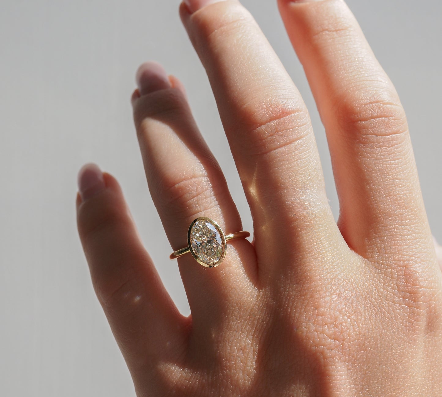 2.01 CT Oval Shaped Bezel Lab Grown Diamond Engagement Ring