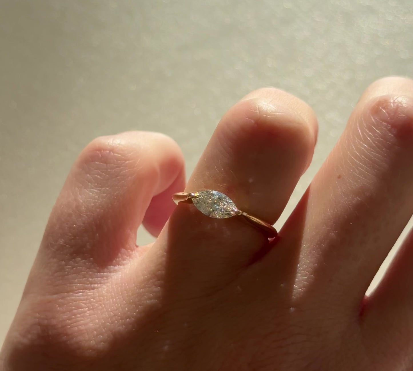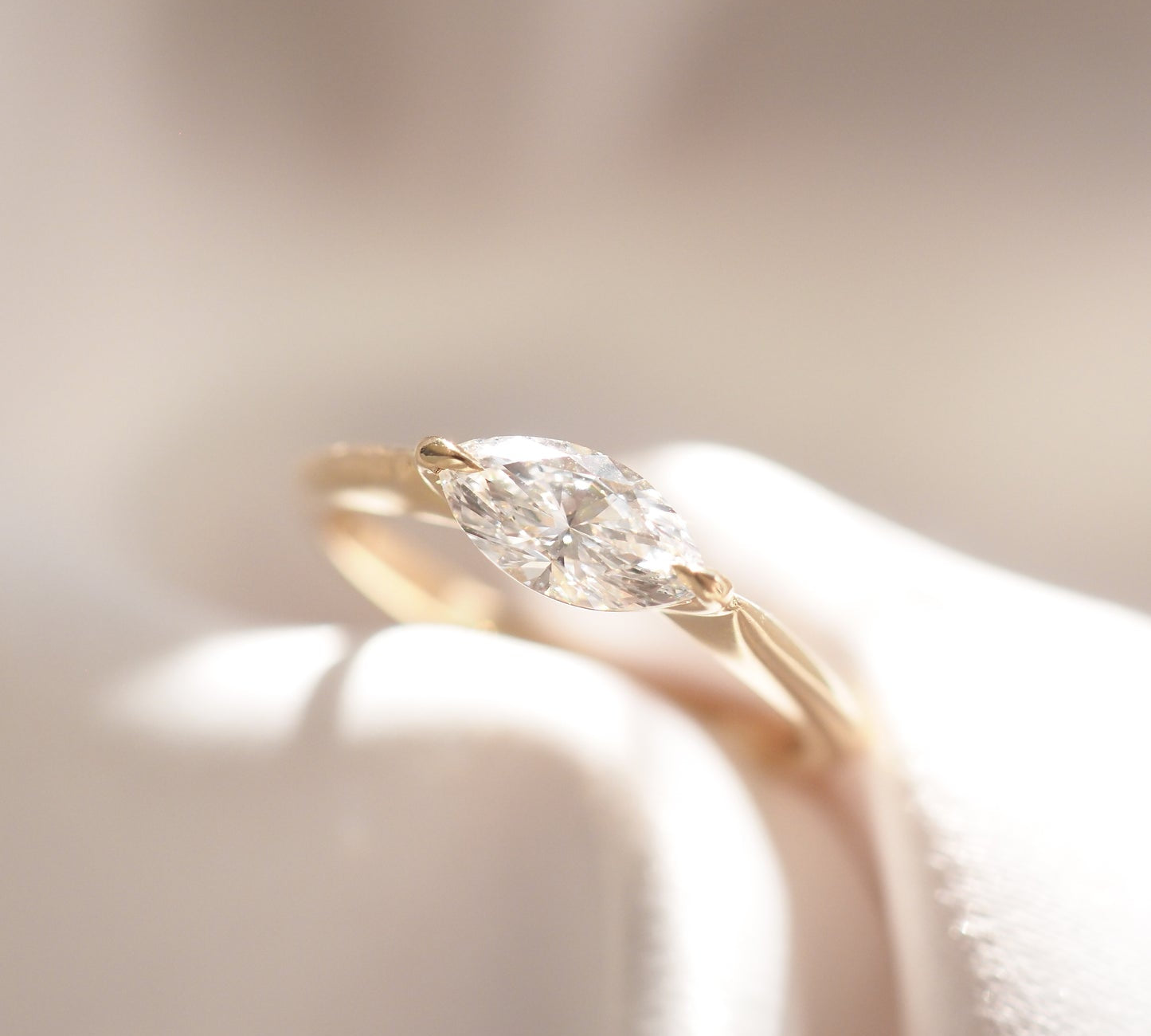 0.60 CT East West Marquise Shaped Solitaire Lab Grown Diamond Engagement Ring