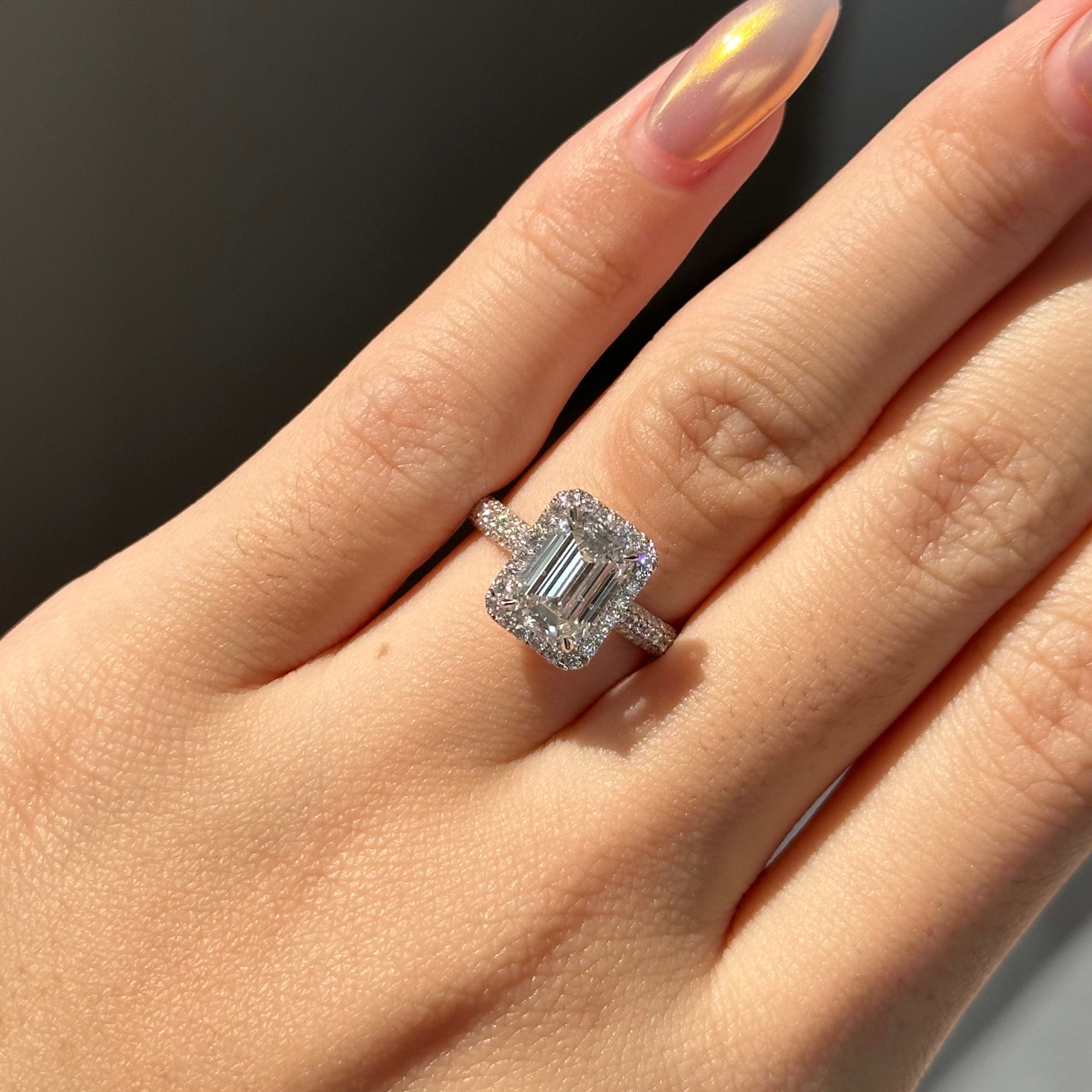 2 CT Emerald Halo & Pave Lab-Grown Diamond Engagement Ring