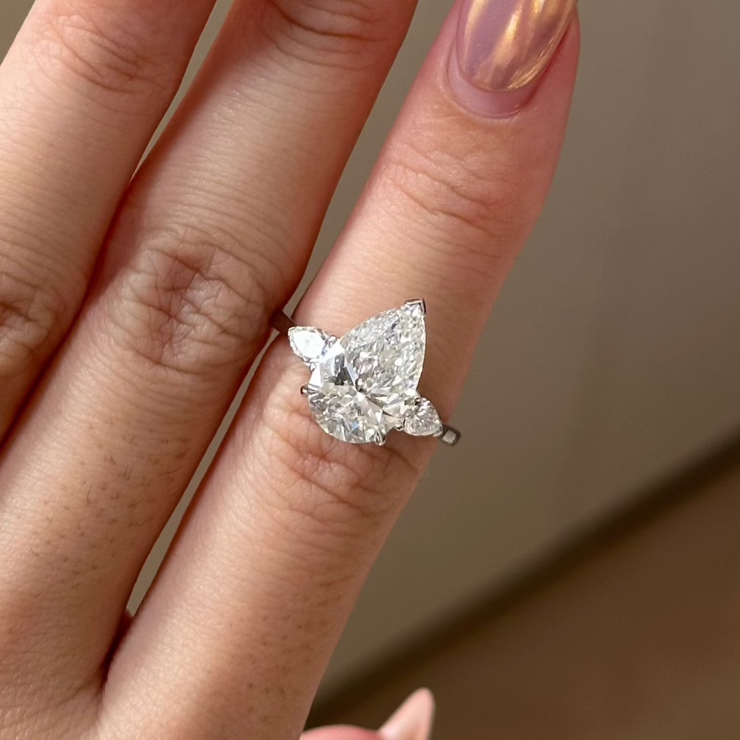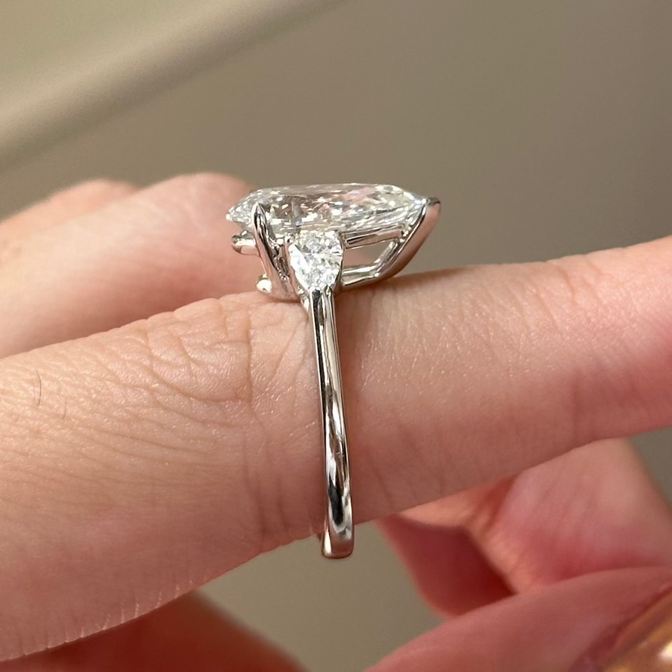 3.07 CT Pear Three Stone Lab-Grown Diamond Engagement Ring