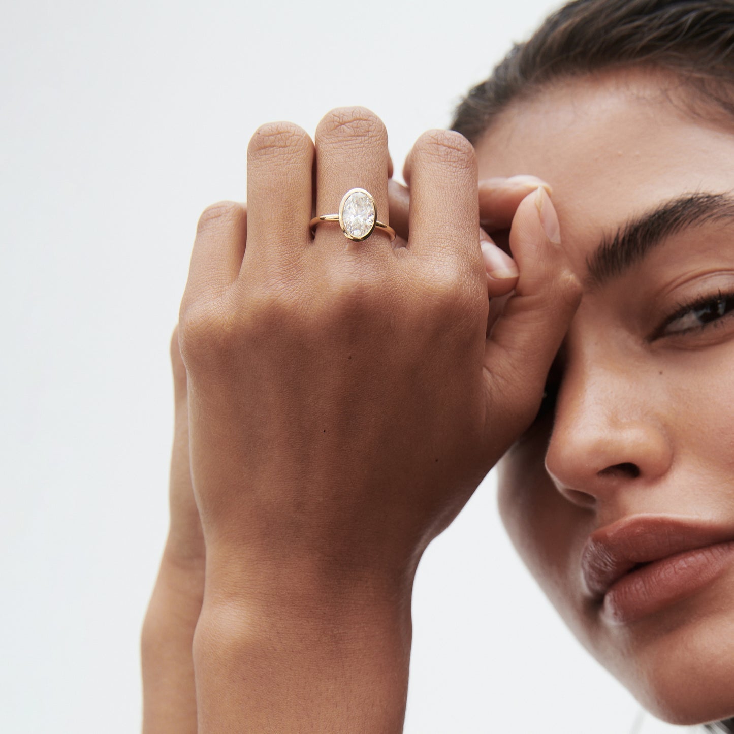 1.5 CT Oval Bezel Lab Grown Diamond Engagement Ring