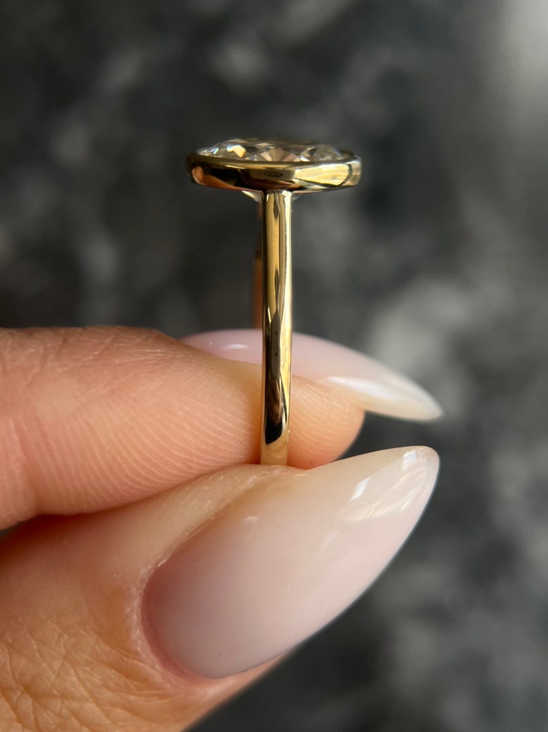 2.0 CT Oval Bezel Solitaire Lab Grown Diamond Engagement Ring
