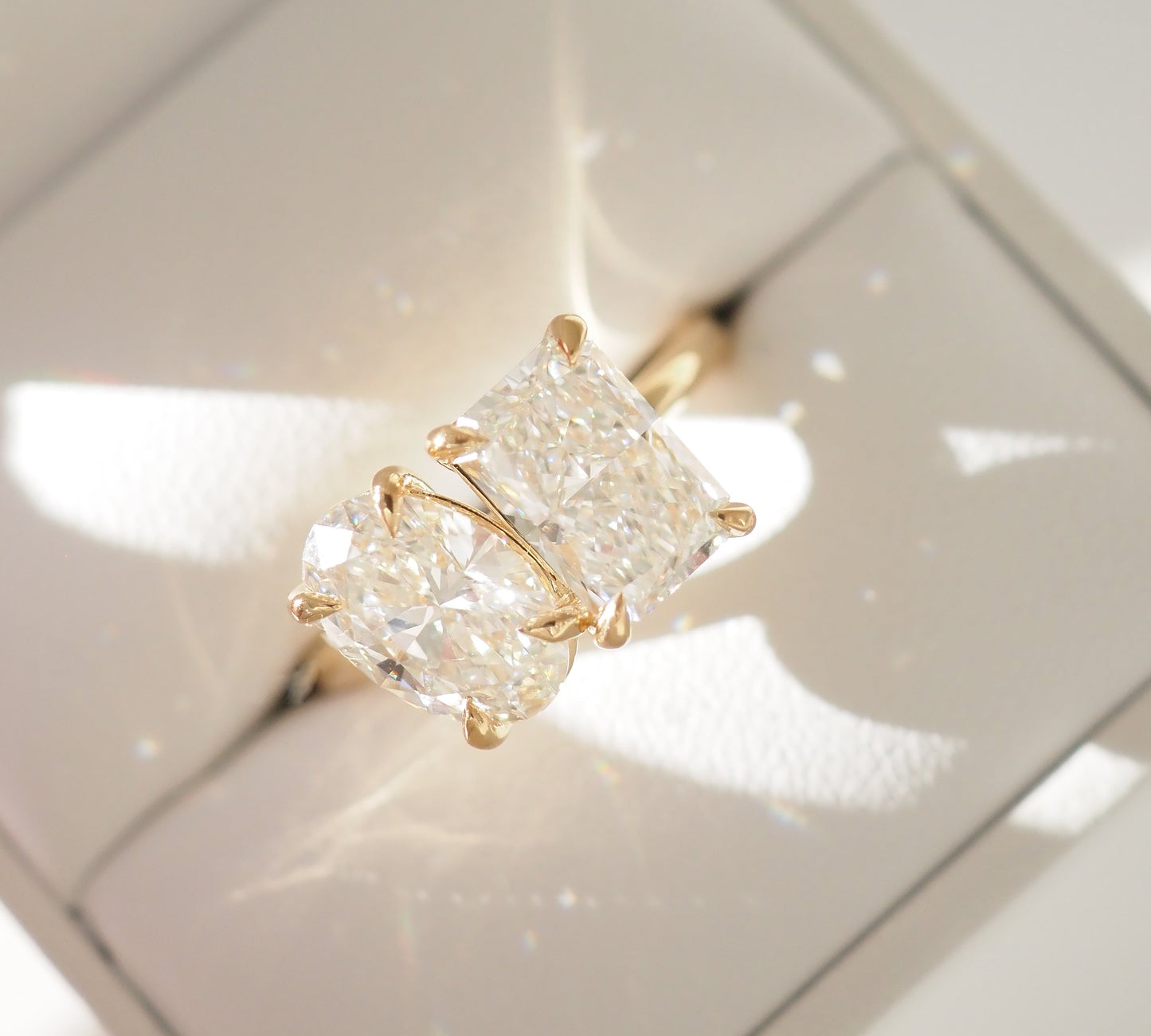 2 TCW Radiant & Oval Shaped Toi Et Moi Lab Grown Diamond Engagement Ring