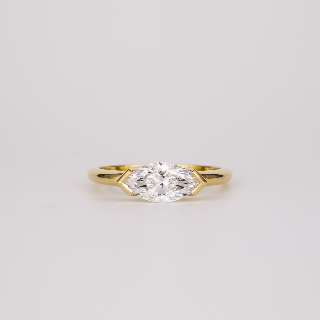 1.07 CT East West Marquise Half Bezel Lab-Grown Engagement Ring