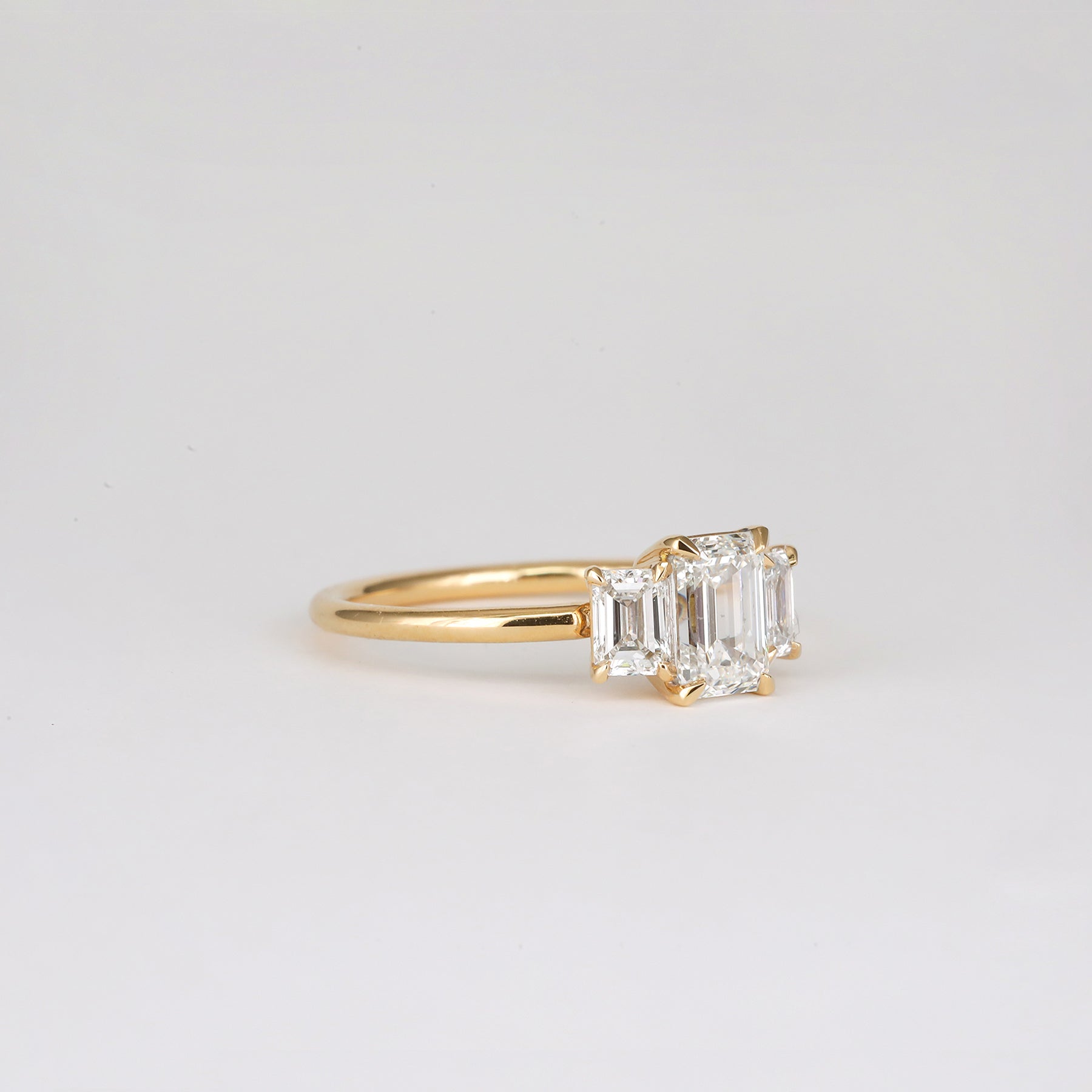 0.90 CT Emerald Three Stone Lab-Grown Diamond Engagement Ring
