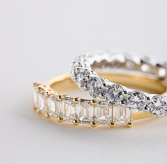 While the untrained eye may visually perceive a moissanite as similar to a diamond, it has a higher refractive index — meaning it produces more rainbow ‘fire’ than a diamond when light hits the stone’s surface. Diamond is also physically harder than moissanite, which is a 9.25 on the Mohs hardness scale compared to a diamond’s rating of 10.