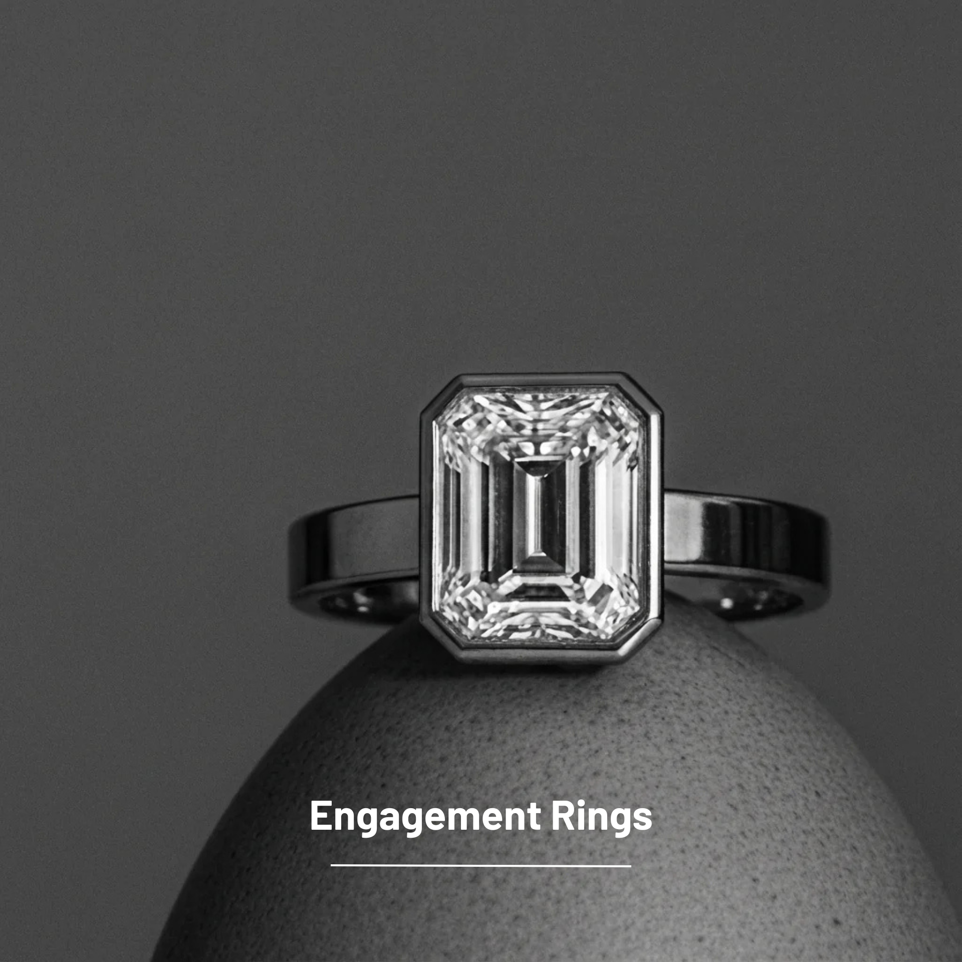 A symbol of your eternal love and commitment. Our Engagement Rings are bespoke, made to order in 3-4 weeks, lovingly handcrafted in America from the finest ethically sourced precious metals and hand selected, certified lab grown diamonds and moissanites.