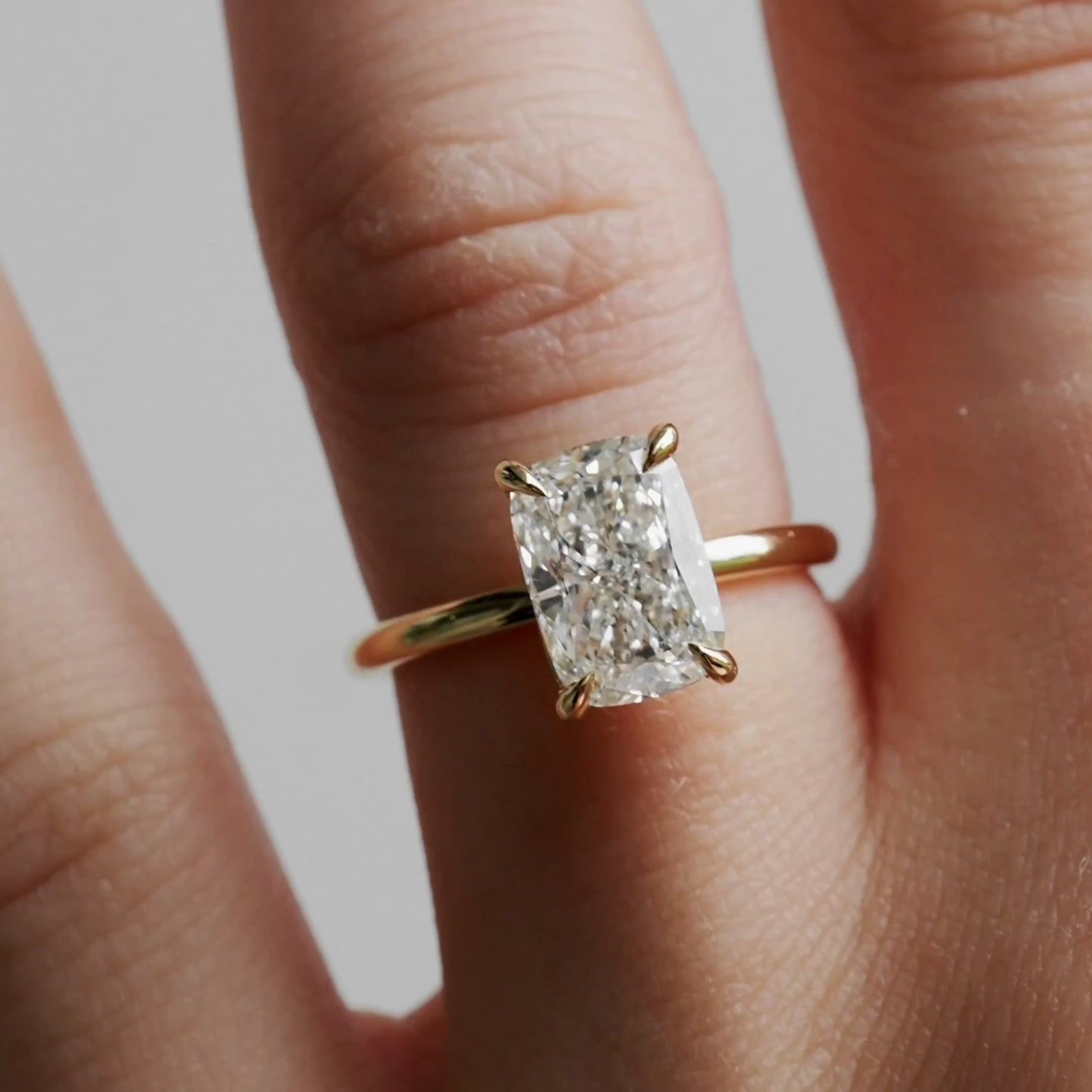 3.02 CT Enlongated Cushion Shaped Solitaire Lab Grown Diamond Engagement Ring