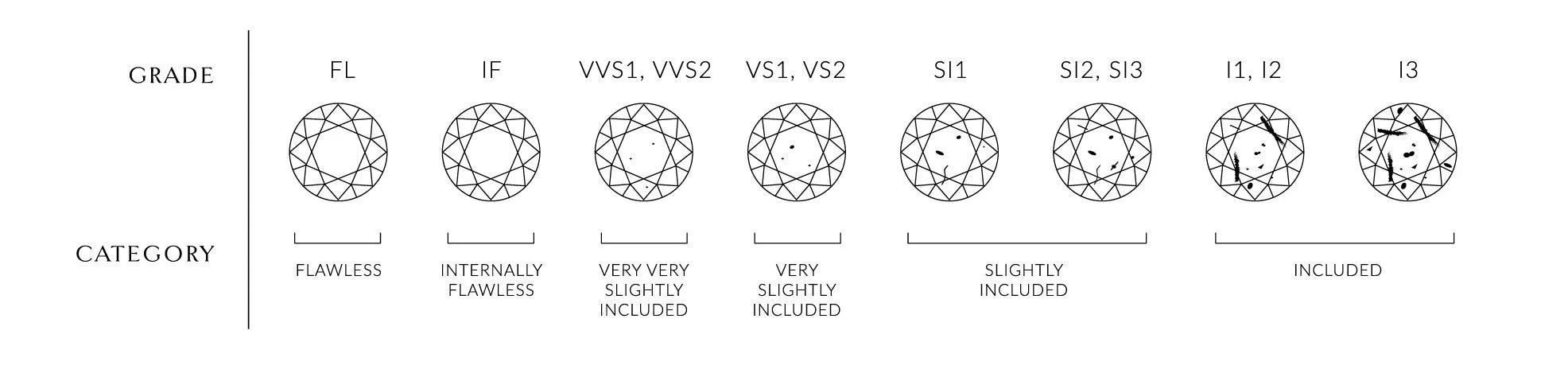 The GIA scale grades Round diamonds from Excellent - Poor. An excellent cut diamond is luminous reflects white and colored light. while a poor cut diamond can seem dark and dull.
