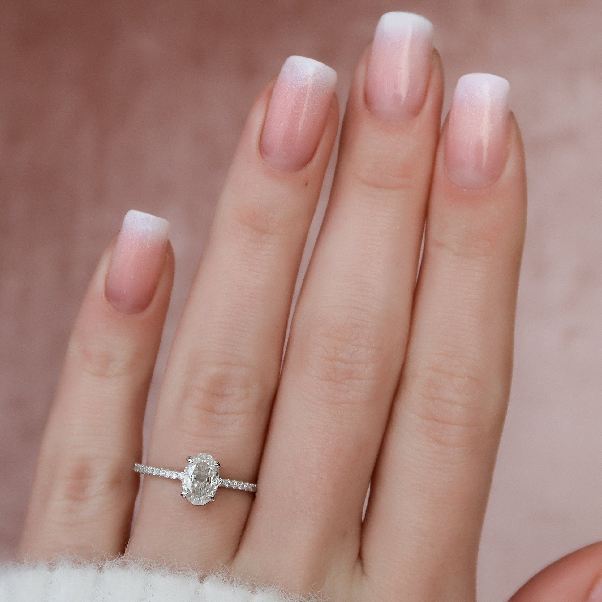 1.0 CT Oval Hidden Halo & Pave Setting Moissanite Engagement Ring