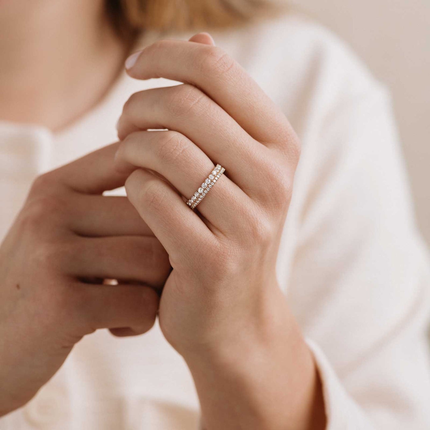 1.09 CT Round Shaped Moissanite Double Row Wedding Band