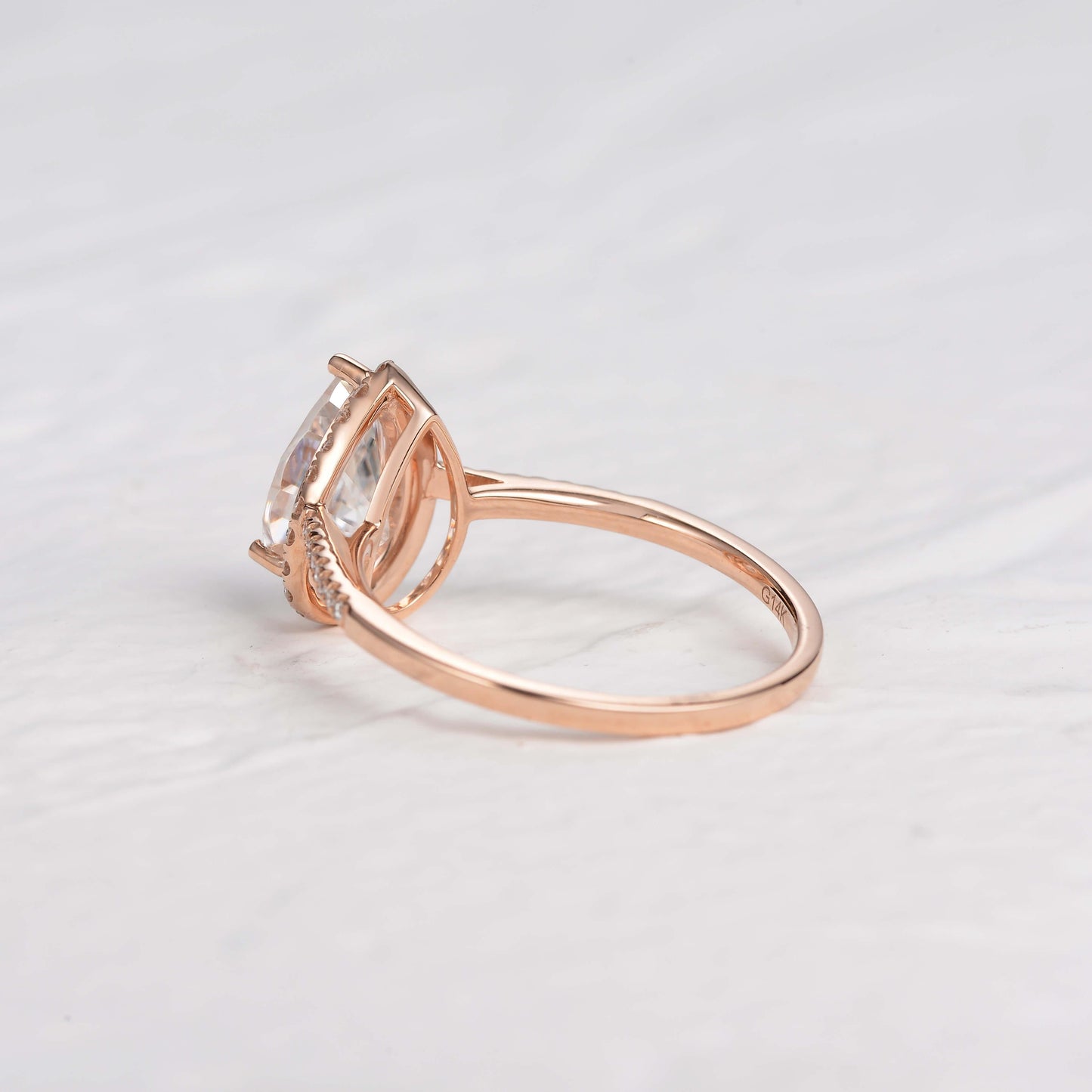 1.25 CT Pear Cut Halo Pave Moissanite Engagement Ring