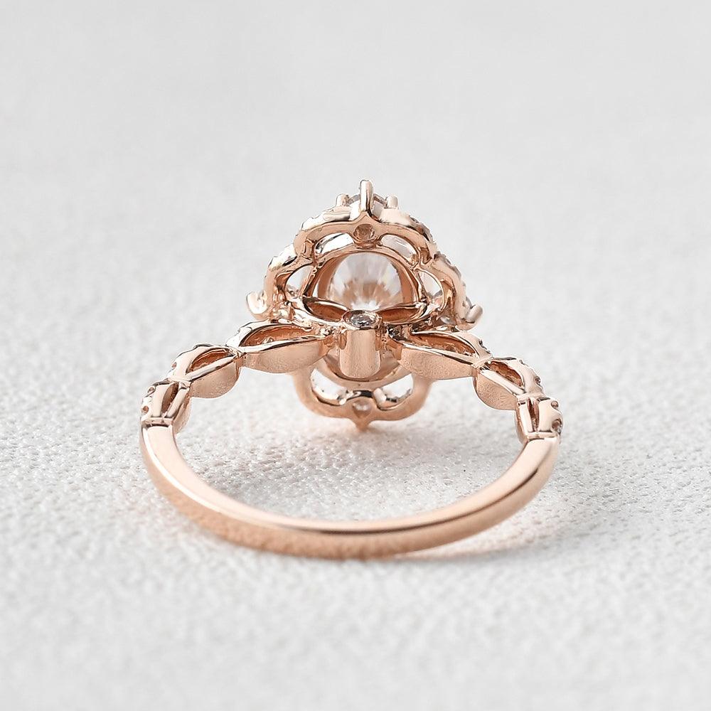 1.33 CT Oval Cut Art Deco Pave Moissanite Engagement Ring