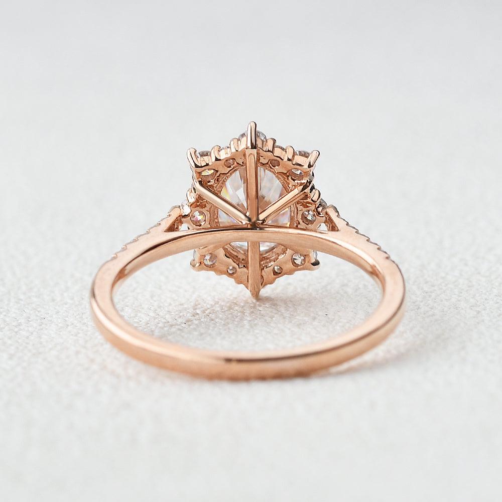 1.33 CT Oval Cut Cluster and Pave Moissanite Engagement Ring