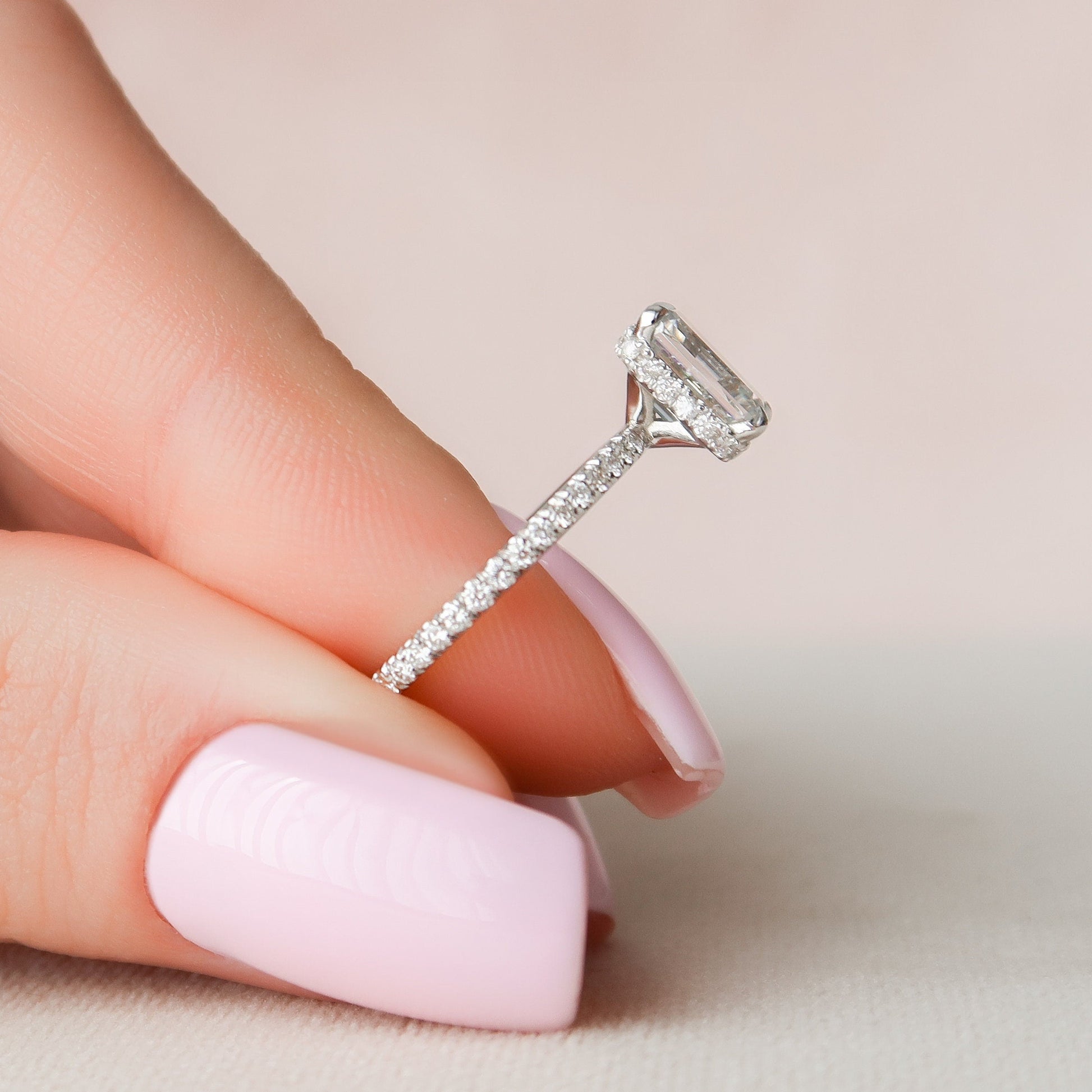 1.50 CT Emerald Hidden Halo and Pave Style Moissanite Engagement Ring
