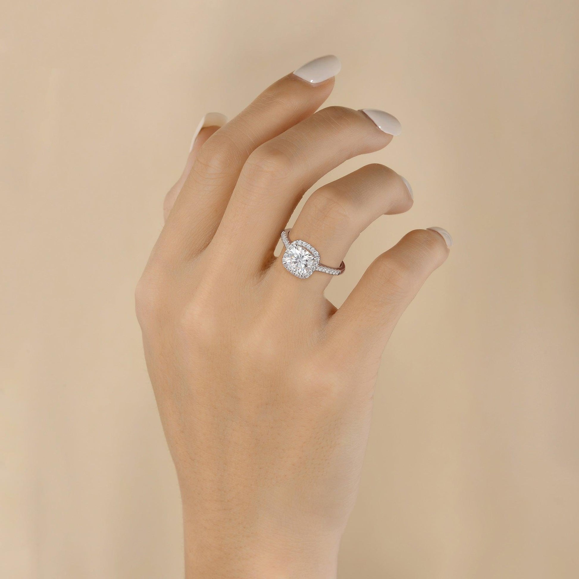 1.8 CT Cushion Cut Halo Pave Moissanite Engagement Ring