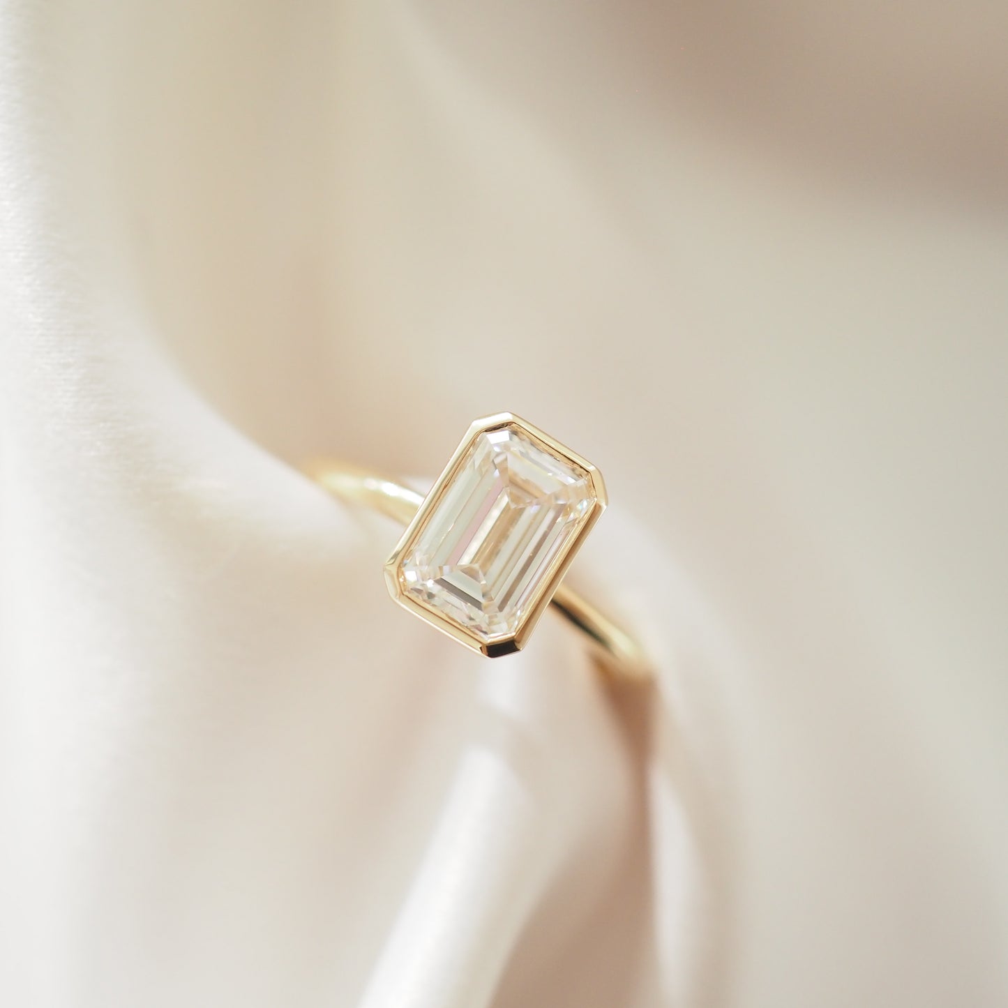2.02 CT Emerald Shaped Bezel Lab Grown Diamond Engagement Ring