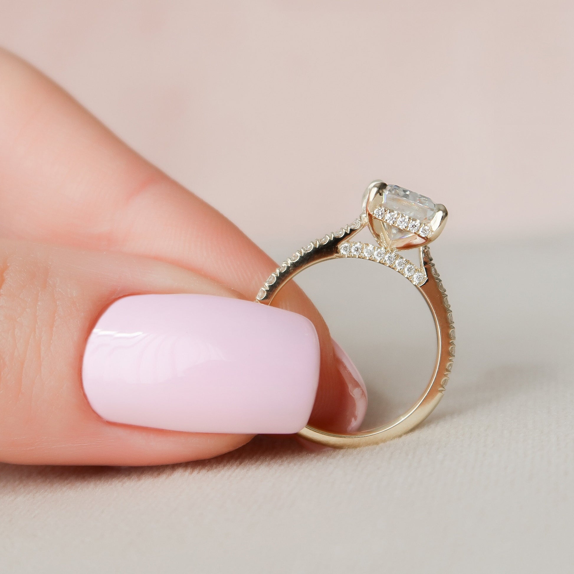 2.5 CT Radiant Hidden Halo & Pave Moissanite Engagement Ring