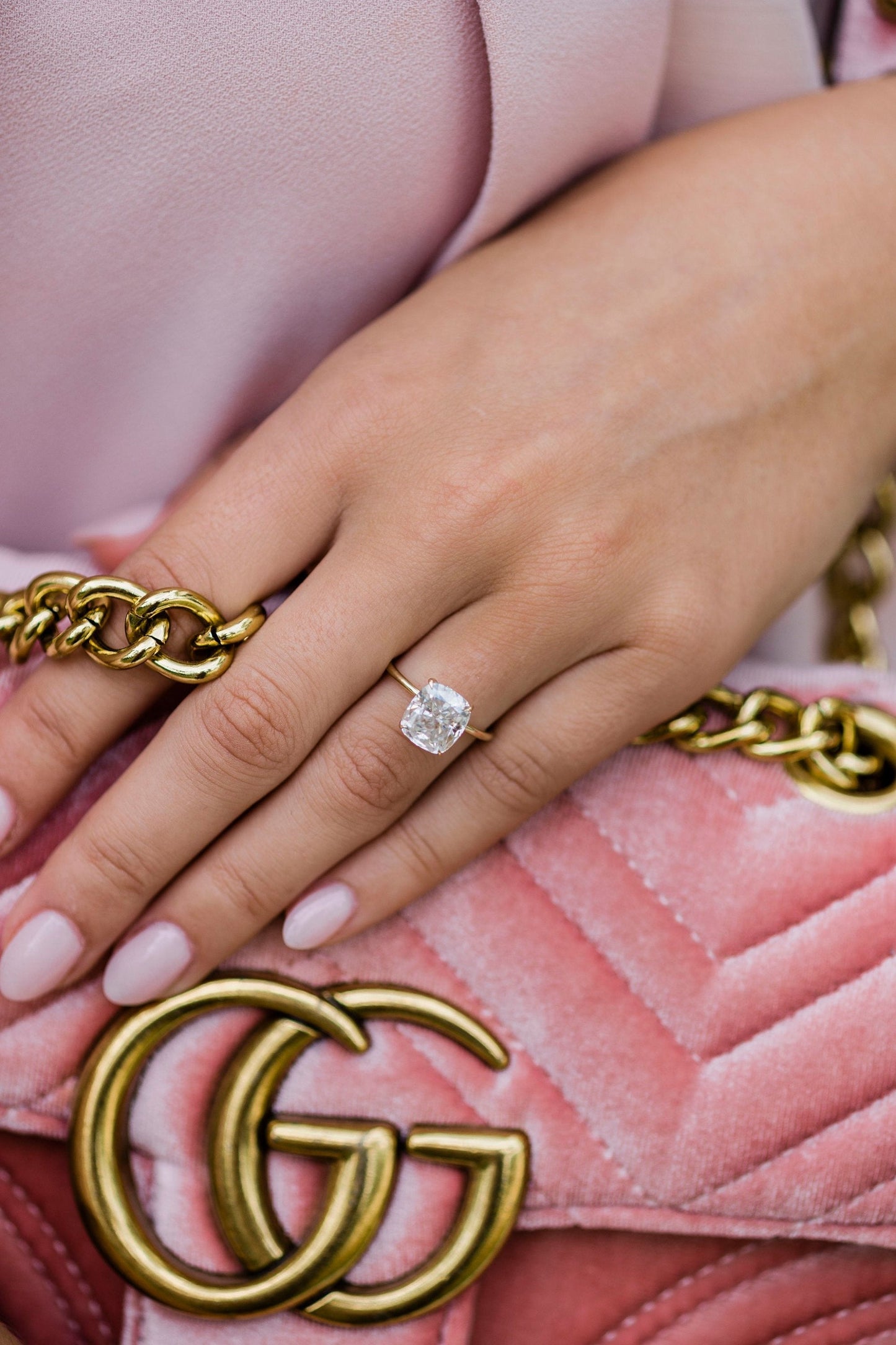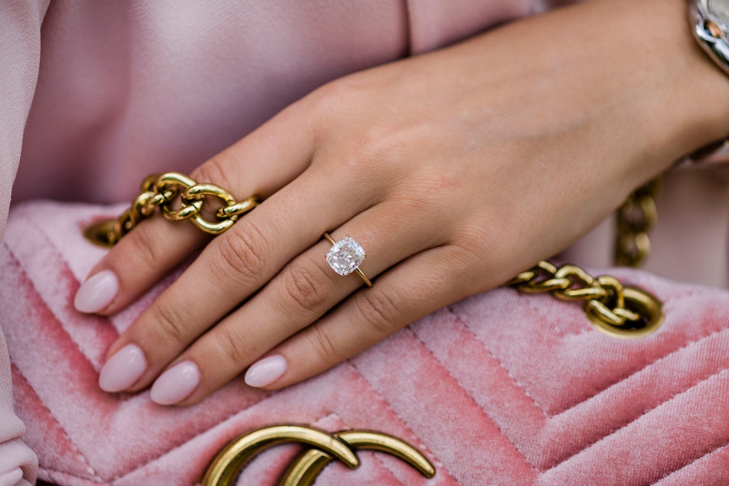 3.0 CT Cushion Solitaire Hidden Halo Moissanite Engagement Ring