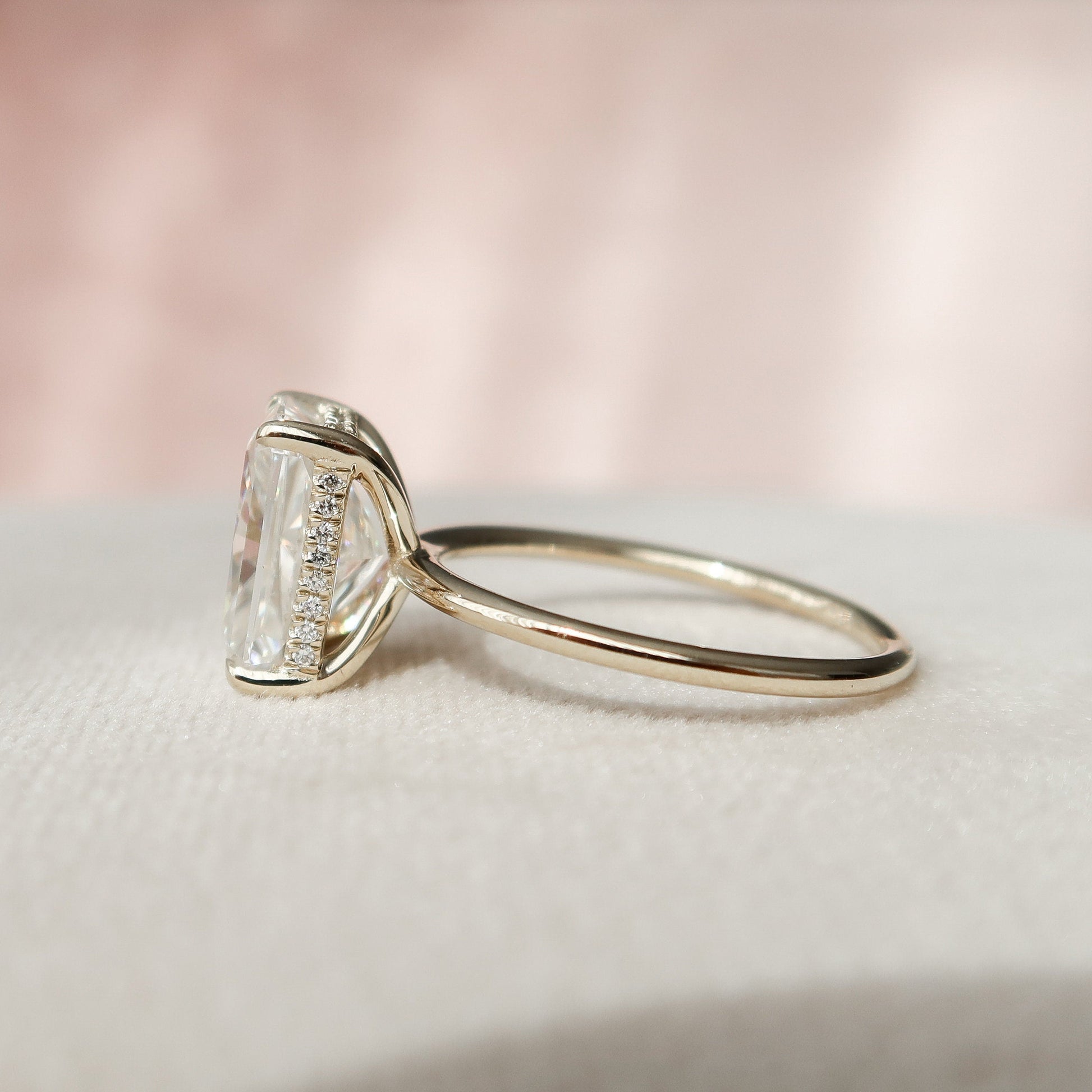 4.5 CT Radiant Cut Hidden Halo Style Moissanite Engagement Ring