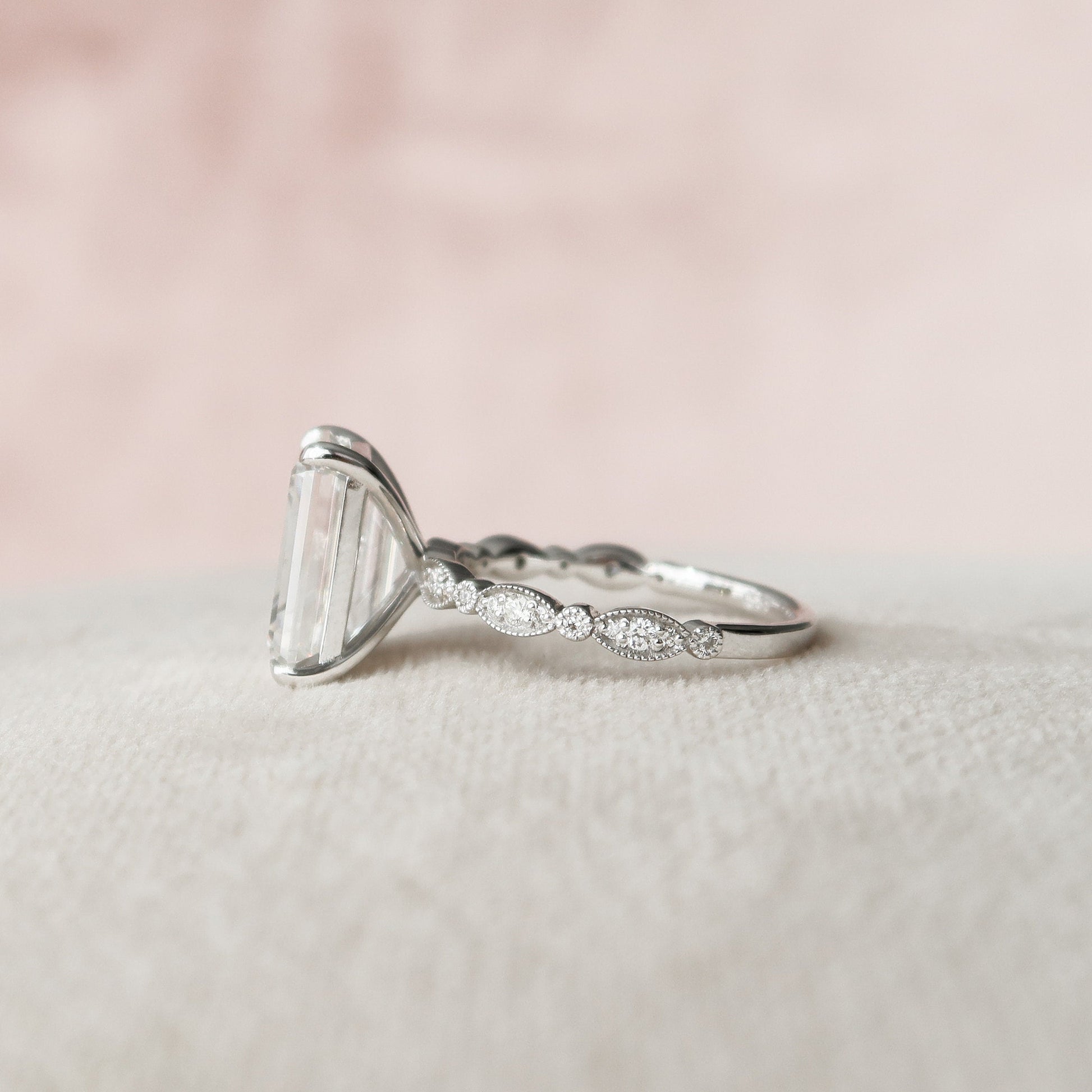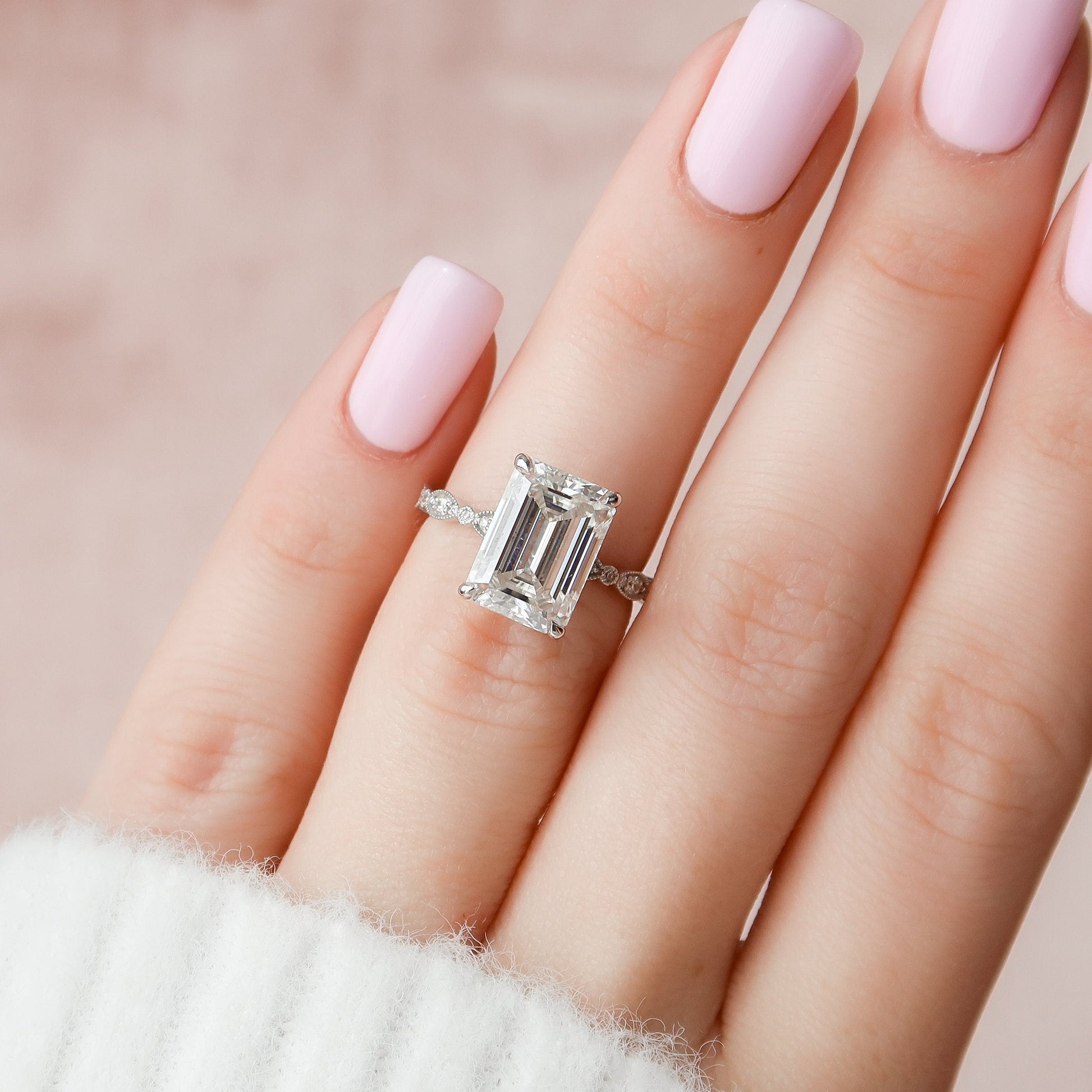 5.0 CT Emerald Milgrain Vintage Style Moissanite Engagement Ring