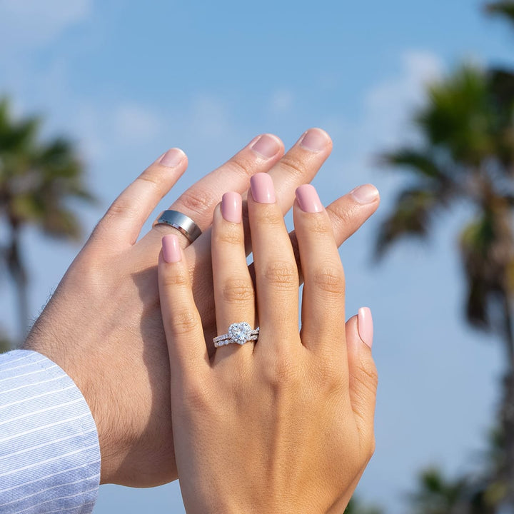 A symbol of your eternal love and commitment. Our Engagement Rings are bespoke, made to order in 3-4 weeks, lovingly handcrafted in America from the finest ethically sourced precious metals and hand selected, certified lab grown diamonds and moissanites.